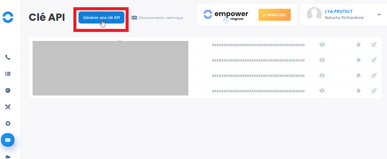 Cliquez sur Générer une clé API :