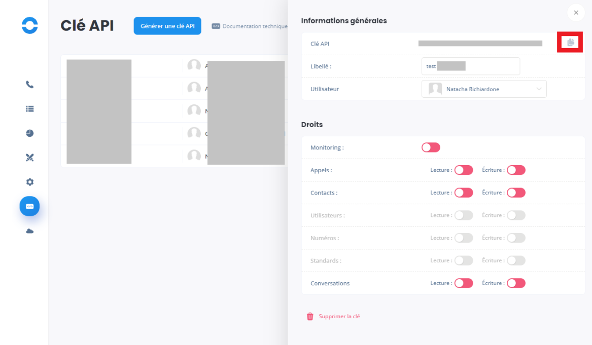 Copier la clé APi ici :