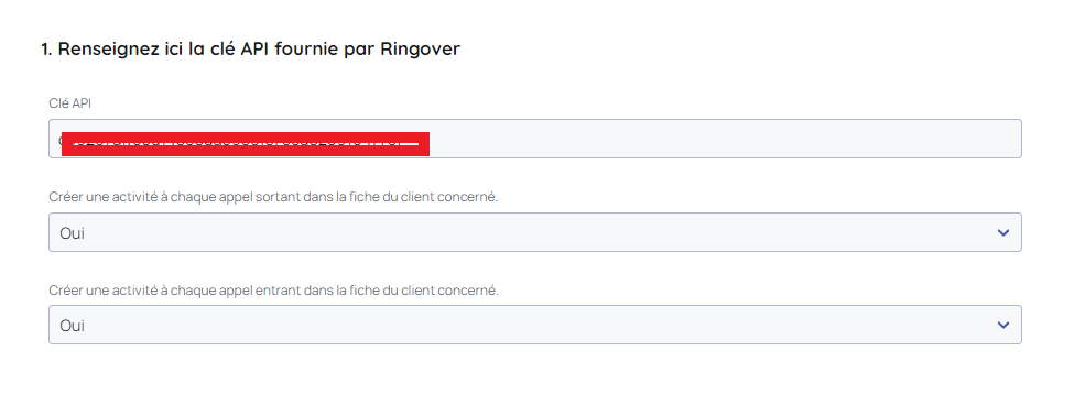 Etape 3 : Renseignez la clé APi Ringover