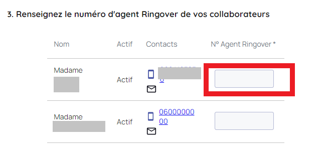 Etape 5 : Renseigner les numéros d'agents dans Lya