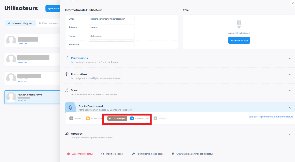 Etape 7 : Paramétrer les permissions dans Ringover