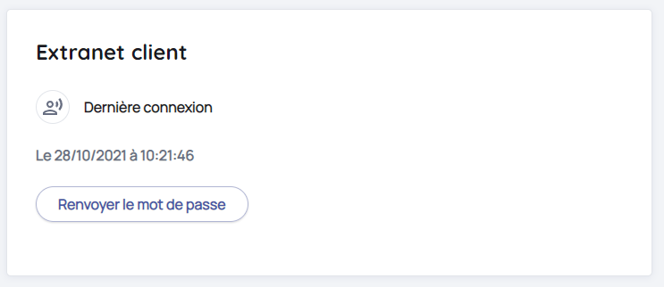 Cet encart permet de visualiser si le client a déjà été invité sur l'extranet client et dans l'affirmative la date et l'heure de sa dernière connexion.
