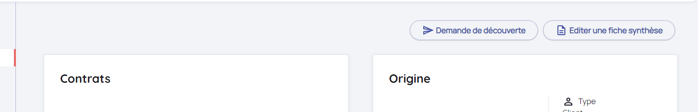 - Demande de découverte : dans l'hypothèse où le formulaire Découverte Client TNS/Particulier est activé dans les paramètres de Lya, alors le bouton Demande de découverte apparait dans l'onglet Vue 360 (pour plus d'informations, rendez-vous sur l'article correspondant ici). Ce bouton vous permet d'envoyer un lien de formulaire web de découverte client.