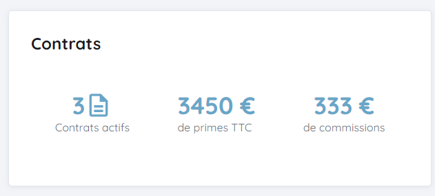 Cet encart permet d'avoir une vue rapide du nombre de contrats intermédiés du client ainsi que les primes et commissions correspondantes.