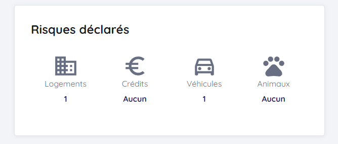 Cet encart affiche les risques déclarés dans l'onglet Profil de la fiche client à savoir :